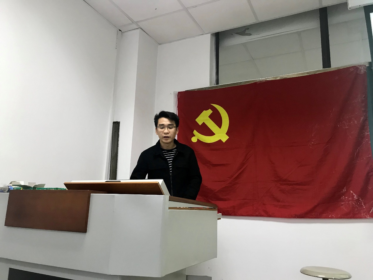 大会开始,由申请入党人逐一进行入党志愿书的宣读以及自己的入党动机。申请入党的同学都真情的表达了对党的向往,对党的忠诚,表示坚定不移跟党走,为党的工作付出自己的力量,为共产主义事业奋斗终生。依次表明了入党动机和他们要加入中国共产党的强烈愿望。每位积极分子发言之后,各对应入党介绍人对其进行学习、工作、实践活动等方面进行评价。最后拥有表决权的党员进行了无记名投票,最终选取了廖鸿博、王明月、胡成、蓝鑫、张警晔正式成为预备党员。