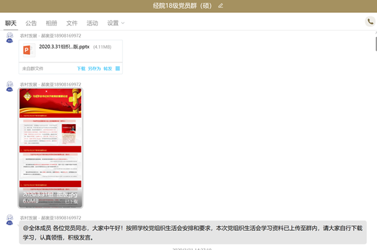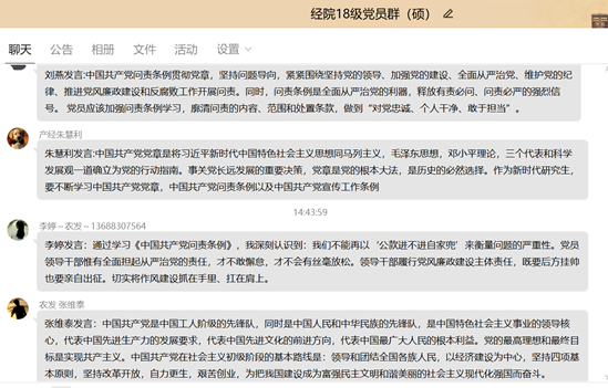2020年4月14日中午2:30,澳门永利yl67762018级硕士研究生党支部在书记郝奥亚主持下,通过QQ在线召开组织生活会,共有25位党员和20位积极分子参加会议。