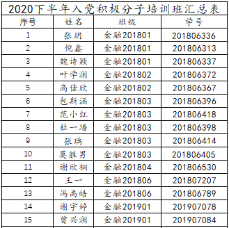经个人申请、党支部提名、学院党委审核,现将澳门永利yl67762020年下半年入党积极分子培训班拟推荐学员名单公示如下。