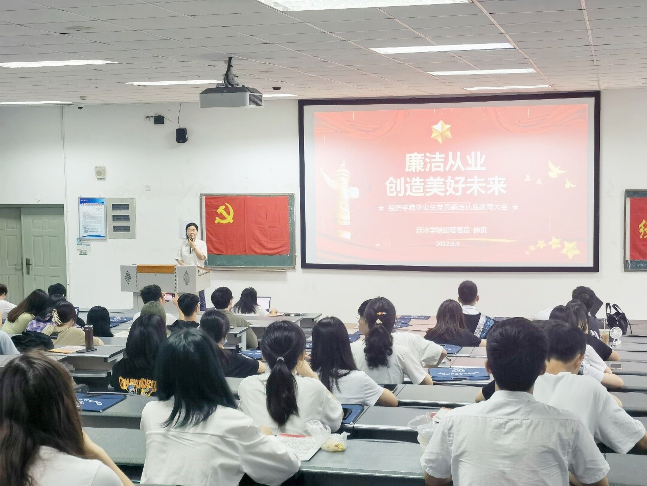 为筑牢毕业生党员廉洁从业思想道德防线,提高毕业生党员拒腐防变和自我保护能力。6月9日,澳门永利yl6776在4教A202教室召开2022届毕业生党员廉洁从业教育大会。学院党委副书记、纪委书记张翅,学院团委书记兼党委办公室副主任、纪委委员钟贝,以及149名毕业生党员参加大会。