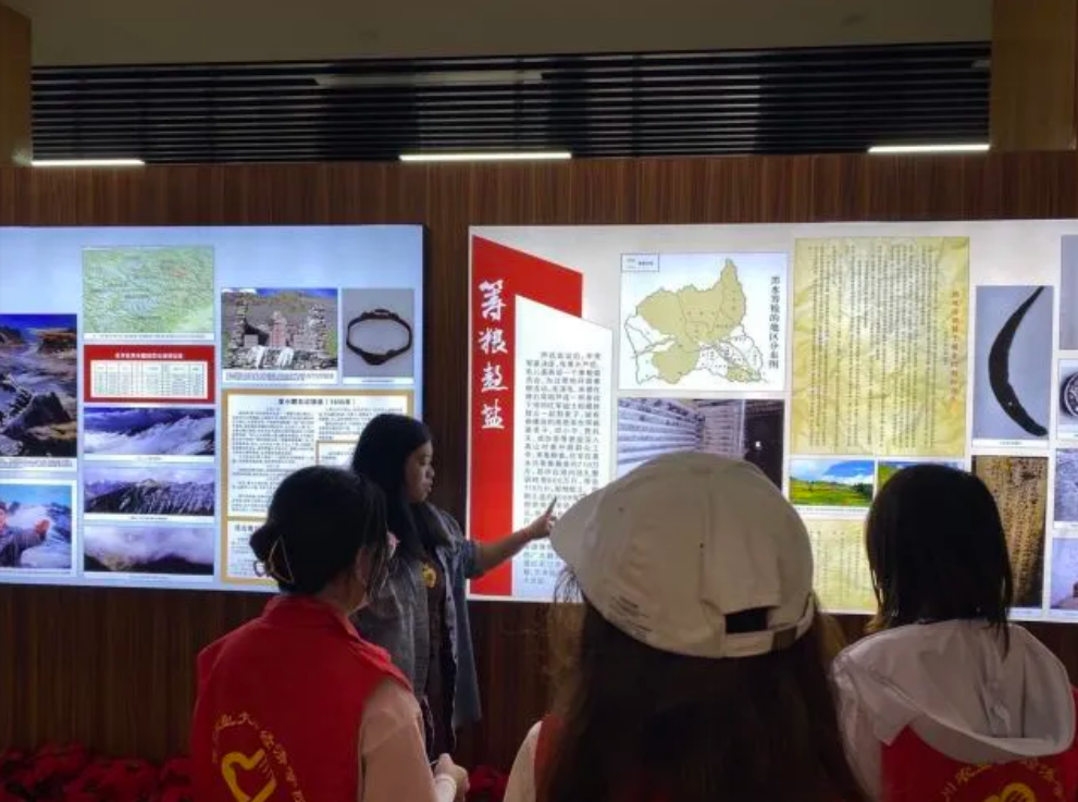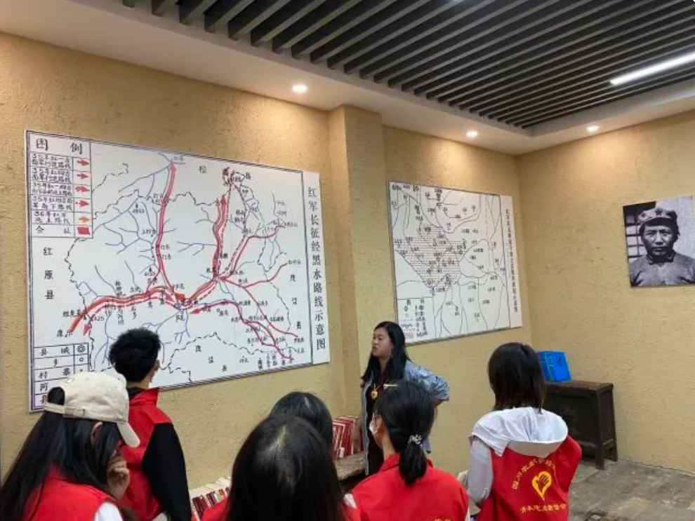 本次重走长征路实践活动第一站,团队来到了昌德红色教育基地。在导游姐姐的耐心讲解下,成员们都听得聚精会神,一步步跟随导游姐姐的指引,学习到红军在黑水的长征路线,了解到那个“红色黑水,筹粮熬盐“的动人故事——