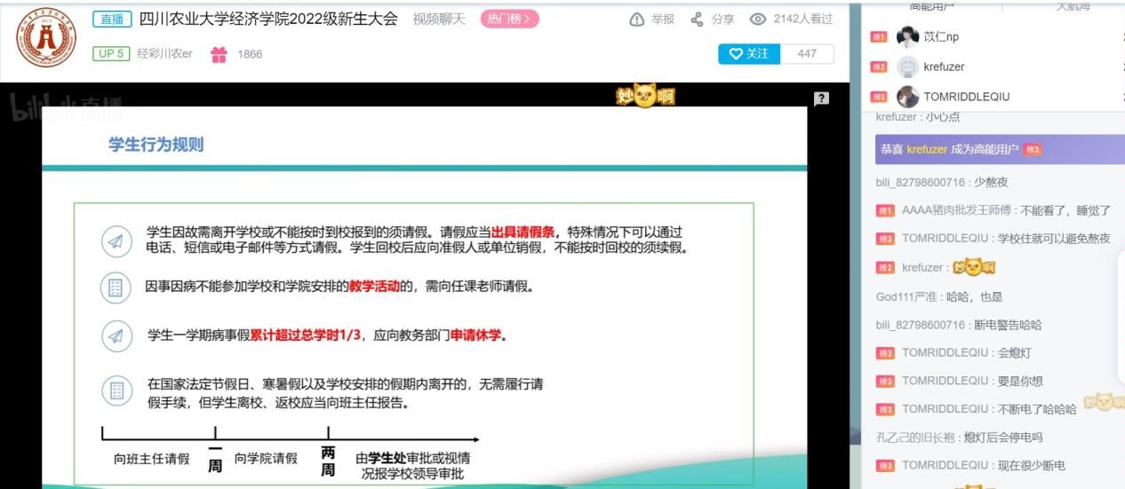 图为2022级新生线上参与此次大会