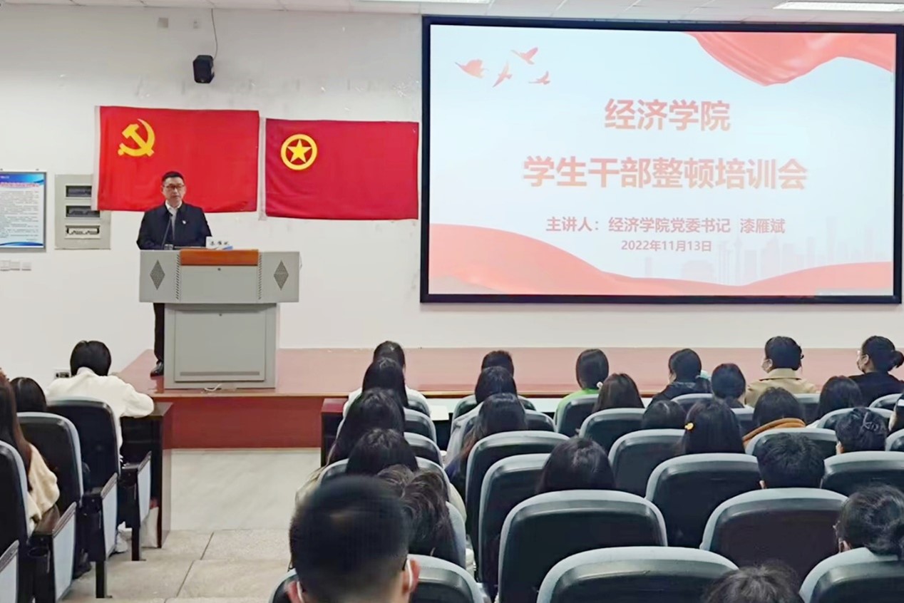11月13日,永利官网召开学生干部整顿教育会,学院党委书记漆雁斌作《三观正确、服务奉献、先锋模范》专题培训,学院辅导员和82名主要学生干部参会。