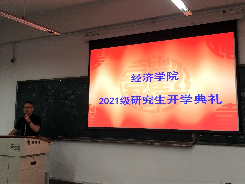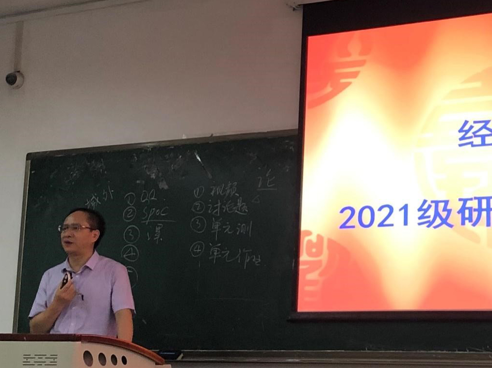 首先,蒋远胜代表学院对2021级研究生新生表示诚挚的祝贺和热烈的欢迎,对澳门永利yl6776的发展历史、师资力量和科研成果作了简要介绍。对于研究生学习生涯,蒋远胜院长提出3个关键词:研究、沉思、实证。也以“学而不思则罔,思而不学则殆”寄语新生们要多思考,希望新生们秉承“厚德博学,经世济民”的院训,砥砺前行。最后用马克思的格言勉励各位:“在科学的道路上没有平坦的大路可走,只有崎岖小路上不畏劳苦的人才有希望到达光辉的顶点。”