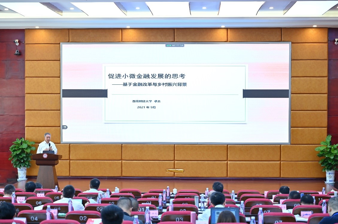 主旨报告分两节进行,由澳门永利yl6776澳门永利yl6776院长、四川金融学会副会长、乡村振兴金融专委会主任委员蒋远胜教授和澳门永利yl6776澳门永利yl6776副院长、区域经济与金融研究所所长吴平教授分别主持。青岛大学党委书记胡金焱教授、西南财经大学校长卓志教授、中国农业大学经济管理学院何广文教授、湖南大学原副校长杨胜刚教授、暨南大学澳门永利yl6776副院长蒋海教授、成都农村产权交易所唐鹏程总经理等6位专家围绕“普惠金融如何‘普惠’?”“促进小微金融发展的思考——基于金融改革与乡村振兴背景”“村产业振兴及其普惠金融服务的基本逻辑”“加快数字普惠金融建设,破解金融支持乡村振兴‘普而不惠’难题”“虚拟数字货币洗钱犯罪的风险、渠道及其监管研究”“农村产权交易与金融创新”等主题分享全国各地应对金融风险的经验,探讨农村金融转型发展的新方向,为乡村数字化与农村金融创新提供理论参考和现实路径。