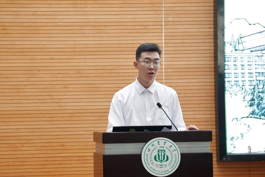 新生代表、金融学202102班李孟霏发言。他回望了从高中走入川农的点滴奋斗岁月,表达了自己来到澳门永利yl6776的自豪和喜悦之情,站在人生新起点,他表示,全体新生将珍惜学习机会,着眼于国家的需要和时代的发展,立大志、明大德、成大才,担大任,学好专业知识,厚植家国情怀,努力成为德智体美劳全面发展的“川农大精神”新传人。