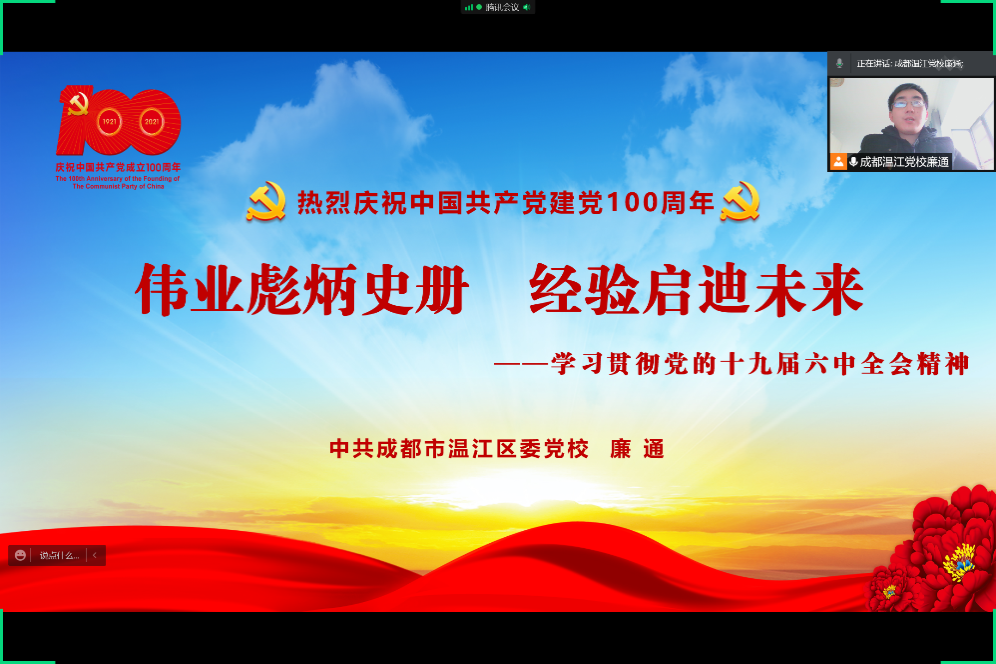 学好全会精神,奋斗点亮青春。澳门永利yl6776的55个团支部纷纷召开学习党的十九届六中全会精神主题团日活动,由2021级学硕团支部联合三个本科生党支部开展的示范性团日活动邀请到了温江区委党校、温江区十九届六中全会宣讲团的廉通老师为大家系统讲解全会精神。经济学2020级专业的100余名青年学子与优秀学生标兵付太飞、创新创业典型连盼盼一起探讨新时代经济学子在向第二个百年奋斗目标进军新征程中的使命与担当。