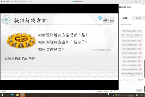 “在最美的年纪做最美好的事,用知识充实自己,以学习填满空白,即使当前疫情形势紧张,我相信同学们都能带着这份坚定的决心克服困难,在不久的将来,大家一定可以收获可喜的成果。”对于同学们良好的精神面貌,金融学系主任臧敦刚副教授也给予极大肯定。