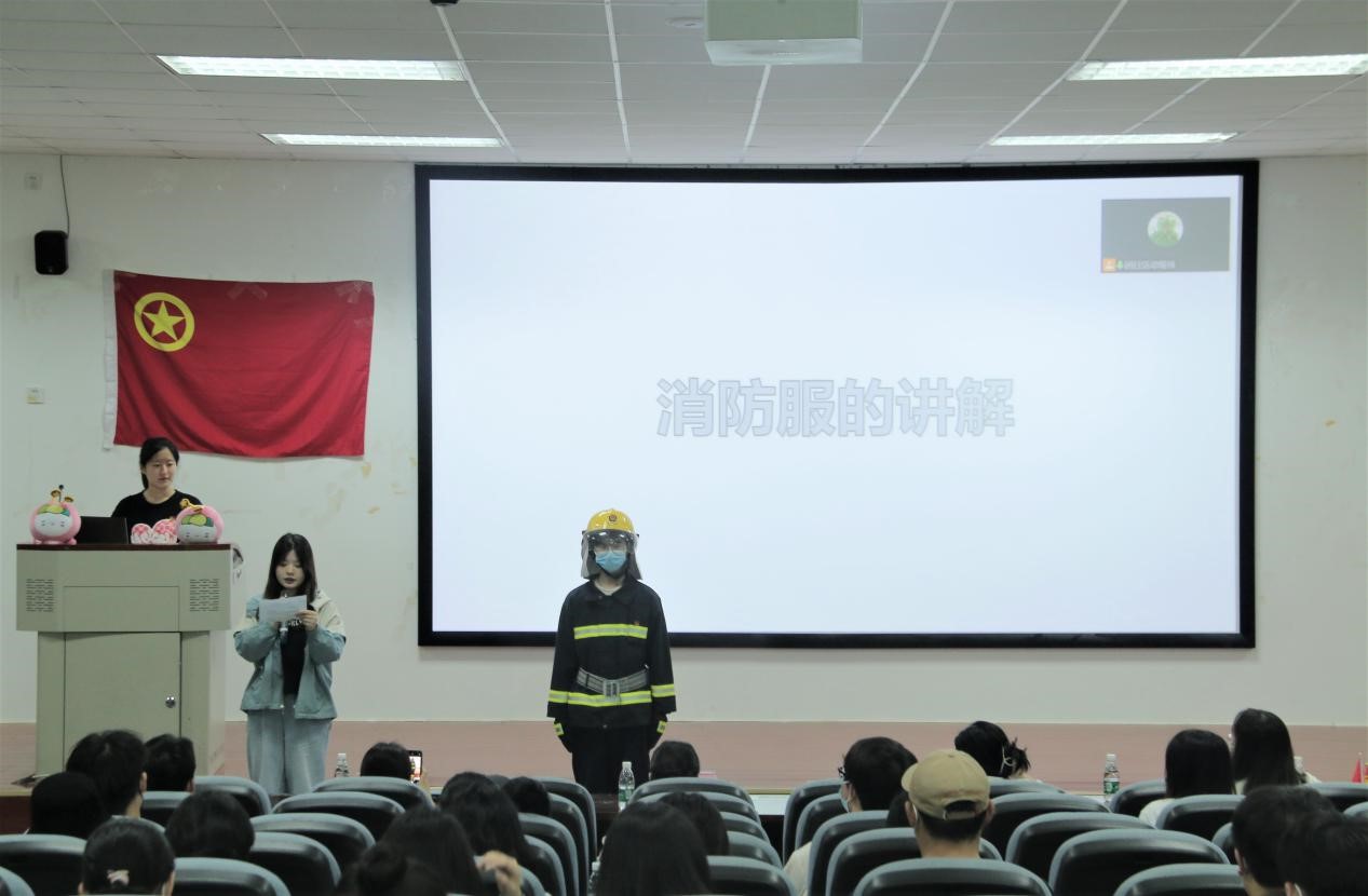 本次活动还邀请到消防协会成员现场展示灭火器使用以及消防服讲解,带领同学们进行有关防火知识的学习。校团委组织建设与发展指导中心主要负责人柯贤泽带领全体团员重温入团誓词,坚定对团的热爱与忠贞。最后,校团委学生兼职副书记陈爽对本次团日活动进行点评。