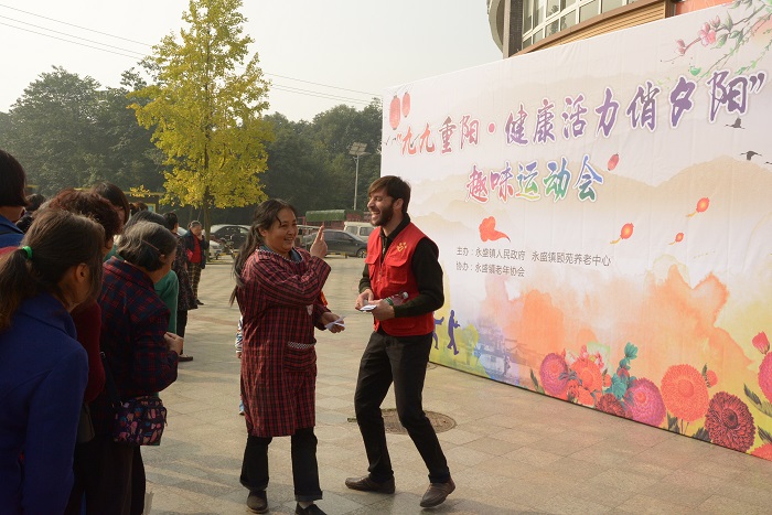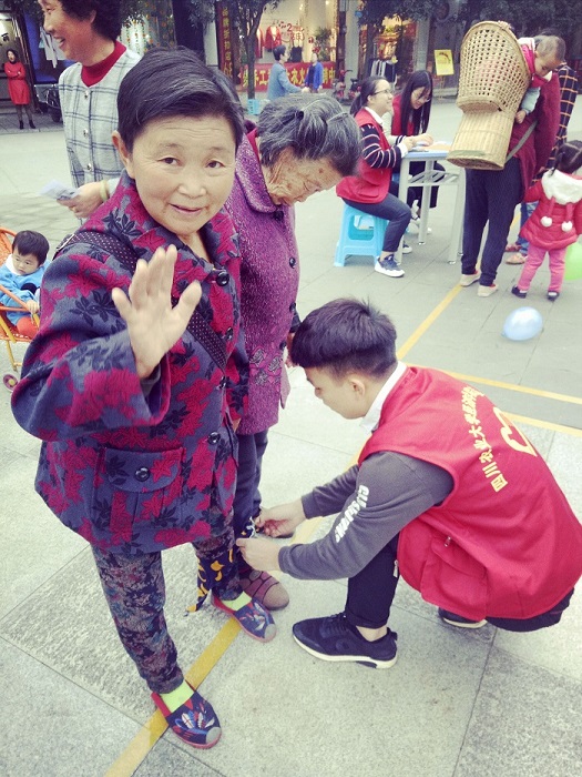 在温江区永盛镇养老院举办的“九九重阳,健康活力俏夕阳”趣味运动会不仅吸引了热爱运动和广场舞的老年人们,还吸引了我校巴基斯坦的两位留学生。27日上午,Hssain和Mansoor早早来到集合点,穿上澳门永利yl6776志愿者红马甲,参加了志愿服务行为规则、重阳节习俗以及如何与中国老人相处等培训。活动前,他们还表露出对沟通的担忧,但在活动过程中,爷爷奶奶们的热情彻底打消了他们的顾虑。踢毽子游戏拉近了他们和老人们的距离,社区老年人舞蹈协会带来的藏舞和广场舞表演更是让他们大开眼界。Mansoor激动地说道:“中国老人太棒了!原来他们的日常生活是这样的!看到这些活力快乐的中国老人就像看到我自己的爷爷奶奶。以后我要多多地参加志愿活动,更加全面地接触和认识中国文化,将它带回我的祖国,做中巴友谊的传播者。”