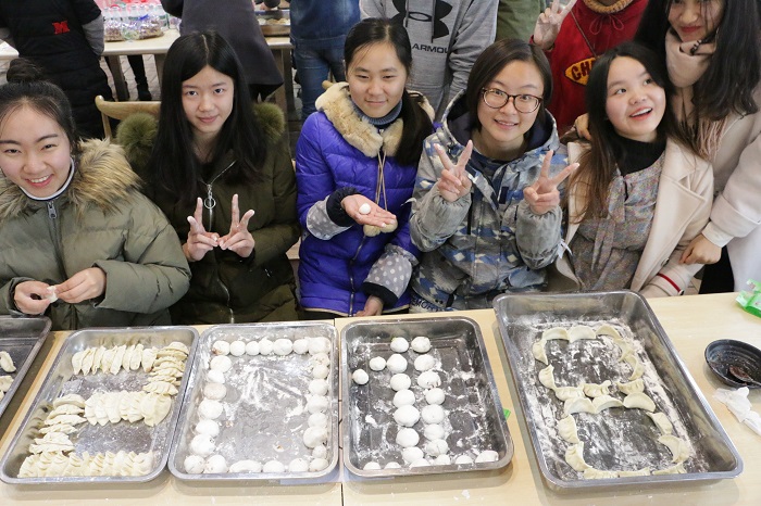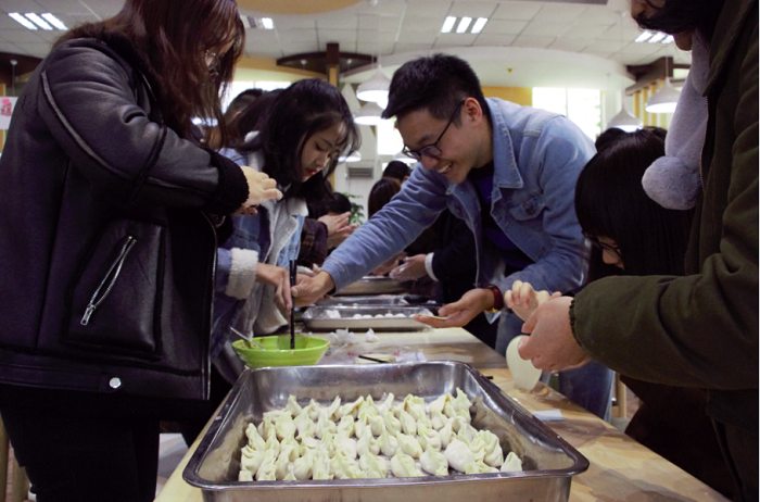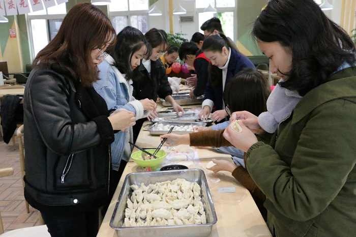 参与本次活动的同学被分成7小组,以小组为单位进行包饺子、包汤圆比赛,最后经过食堂工作人员的评选选出优胜小组。下午15:20,活动正式开始,同学们热火朝天地忙了起来,现场年味浓厚,同学们在温馨的食堂内共同过年,会包饺子的同学耐心地教不会包饺子的同学。参与活动的有不少来自北方的同学,以前在家过年都有包饺子的习俗,“很开心能来这儿和大家一起包饺子,总让我想起家里过节的氛围”一位来自辽宁的同学这样告诉记者,她边说边拍照“一会儿我要把我包的饺子发给我妈看。”