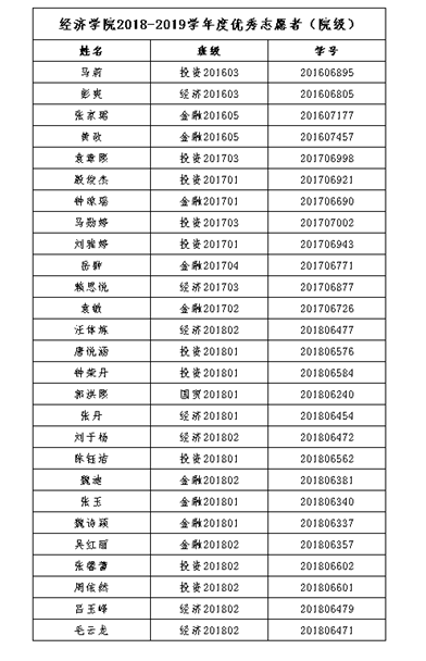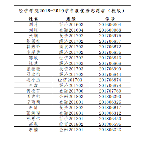 经个人自荐,小班推荐提名,学院团委审核,拟推以下同学为永利官网2018-2019学年度优秀志愿者,现公示如下:
