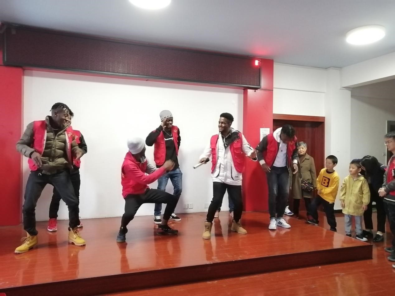 随后,7个留学生共同带来了一首原创歌曲与一支独居非洲特色的原创舞蹈,并邀请社区居民一起参与互动。一位留学生更是以流利的中文邀请社区居民合唱中文歌曲——《明天会更好》。动感欢快的节奏使社区居民的情绪高涨,纷纷拍手伴奏;热情轻快的舞步使人们的心情愉悦放松,吸引得居民们纷纷拿出手机拍照记录。