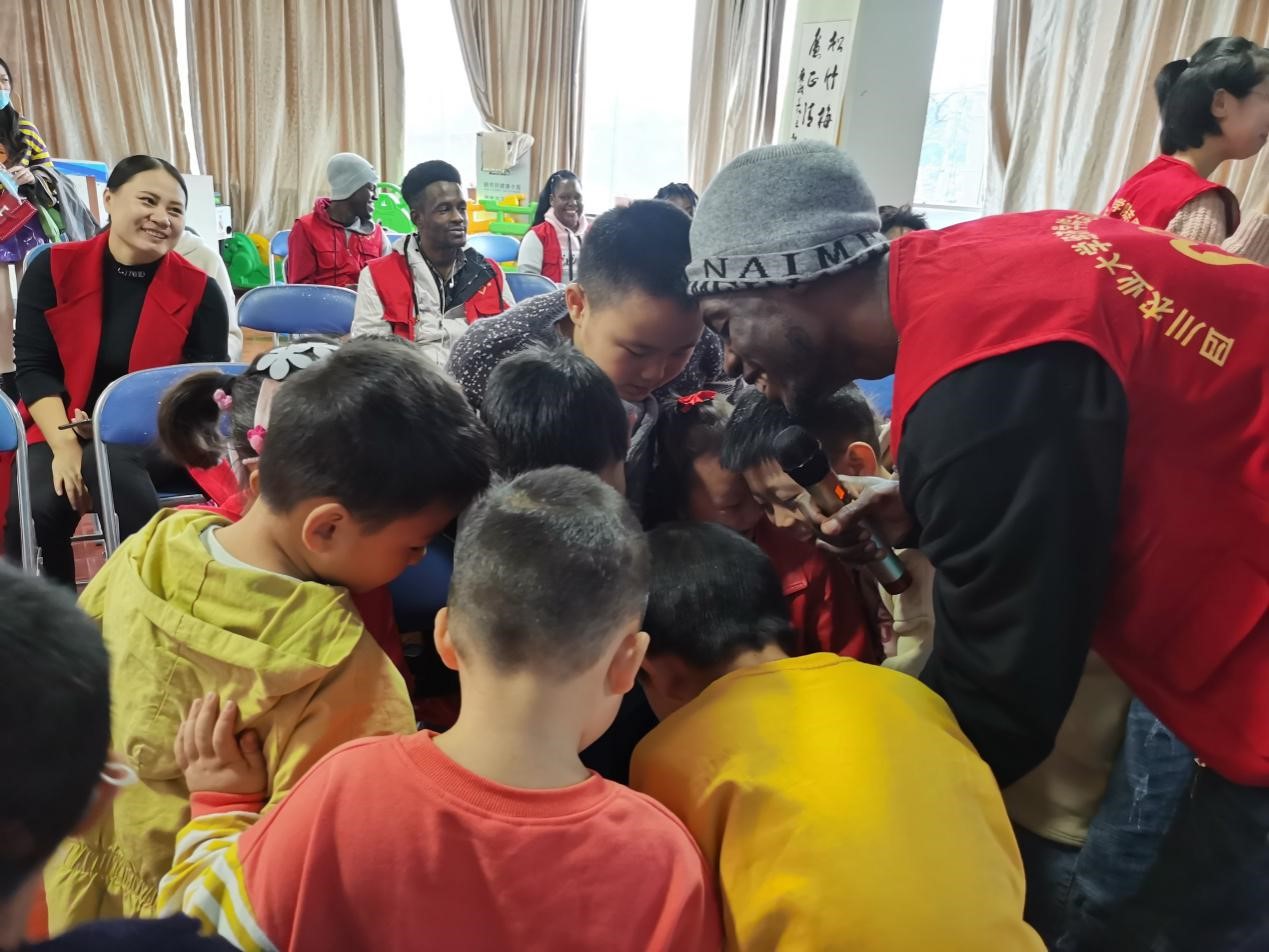 而后社区居民与留学生共同参与了“你教我学”“传声筒”“你比我猜”等三个有趣的互动小游戏,此环节既使社区居民了解到了留学生家乡的日常用语,留学生也通过此环节学到了中国的俗语名句,感受到了中国文化的博大精深。最后,活动在留学生给社区小朋友赠送礼物并拍照留影的欢乐氛围中拉下了帷幕。活动得到了到场居民的一致肯定,纷纷表示本次活动十分有趣、有意义;留学生也表示十分享受此次活动过程,此次活动使他们走出校园,有机会与当地居民近距离接触,建立了美好的友谊。