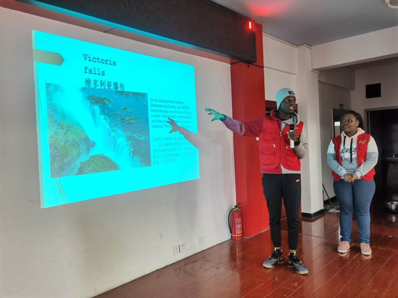破冰环节结束后,活动便在欢快的氛围中正式开展。首先,由中国学生志愿者代表以中英双语讲述了中国的特色文化,紧接着分别由来自津巴布韦、肯尼亚、加蓬、利比里亚、几内亚的外国留学生讲述了自己国家的特色文化,其中包括地理位置、节日、传统食物、服饰、旅游胜地等。此环节让留学生感受到了中国文化的博大精深;同样,也让社区居民们感受到了不同国家文化的独特魅力。现场的小朋友更是被美丽独特的他国风光、美食等吸引得不断欢呼。