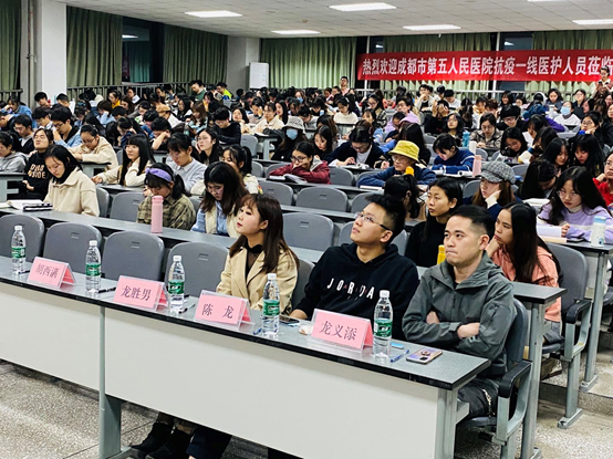之后由五医院团委干事胡西满医师为大家介绍了成都市第五人民医院内部志愿者服务的有关内容。胡西满医师细致入微的讲解使同学们对五医院的志愿服务有了初步了解,激起了同学们的志愿热情,同时胡医师补充的一些实际情况和注意事项也让同学们能够对一些突发问题有着及时反应。