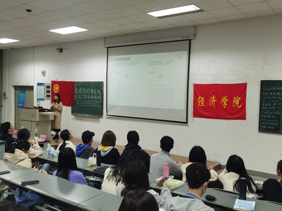 随后五医院团委委员龙义添医师为同学们带来了冬季传染病的自我防护和防疫基本知识。龙医师深入浅出的讲解及风趣幽默的话语引得同学们掌声不断,接着用一个科普类的小视频让与会者对疫情的传播与防控有了进一步了解,解决了同学们的诸多疑惑。